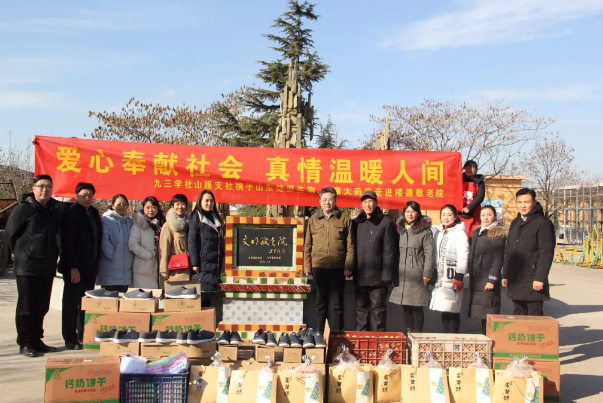 敬老愛老一直是中華民族的傳統(tǒng)美德。元旦佳節(jié)之際,伴隨著冬日的暖陽,九三學(xué)社攜手健源生物、葆康大藥房等愛心企業(yè)人士一行13人,山東健源生物總經(jīng)理助理、辦公室主任王玲女士、技術(shù)部總監(jiān)李燕女士、外宣部邢燭經(jīng)理代表公司參與到此次愛心活動中,帶著精心為老人們準備的雞蛋、餅干、鞋子等慰問品,沿著崎嶇不平的山路,驅(qū)車輾轉(zhuǎn)2個小時的車程,給樓德鎮(zhèn)敬老院的老人們送去關(guān)心和溫暖。再次來到這里,大家感到格外的親切,這幾年學(xué)社一直關(guān)注著敬老院老人們的生活近況,希望能夠為老人們做點事,讓老人們能夠更好的度過晚年時光。老人們看到我們來了顯的格外高興,一個個笑容滿面,精神抖擻。