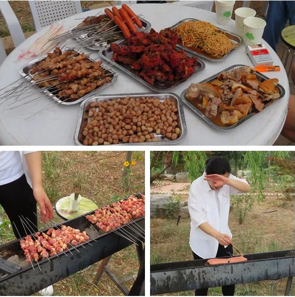燒烤過程中女同學(xué)互相配合著串肉,男同學(xué)則忙著生火、加炭,場(chǎng)面熱鬧。大家都拿出了“十八般武藝”,展示出自己的動(dòng)手能力和美食鑒賞能力,每個(gè)人笑容滿面,洋溢著喜悅的氣氛。