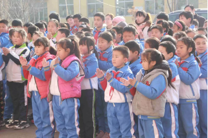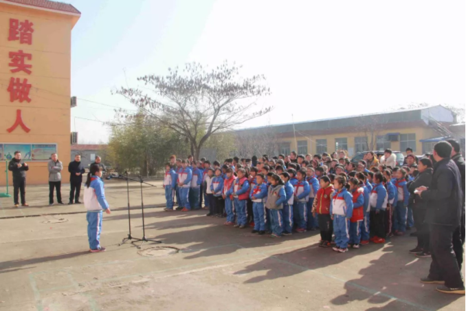 11時(shí)整,全校老師和同學(xué)們相聚在學(xué)校操場,愛心捐贈(zèng)活動(dòng)正式開始,出席本次捐贈(zèng)活動(dòng)的有:九三學(xué)社的劉彥濤秘書長、侯家華主委、泰安市化馬灣鎮(zhèn)教委彭主任與健源生物董事長王誠先生、總經(jīng)理助理兼辦公室主任王玲女士。學(xué)校張校長對(duì)九三學(xué)社與山東健源生物科技有限公司的捐贈(zèng)表示感謝,感謝九三學(xué)社以及社會(huì)各界對(duì)學(xué)校教育的關(guān)注和支持,感謝在寒冬里送來溫暖和祝福。并告誡全校師生要懂得感恩,將這份愛心傳遞下去。