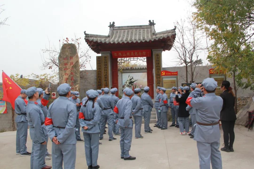 青山默默,松濤陣陣,在莊嚴(yán)肅穆的泰安徂徠山烈士陵園前,向革命英烈敬獻(xiàn)花籃,緬懷革命先烈。面對(duì)鮮紅的黨旗,全體共產(chǎn)黨員重溫入黨誓詞,做出莊嚴(yán)宣誓。