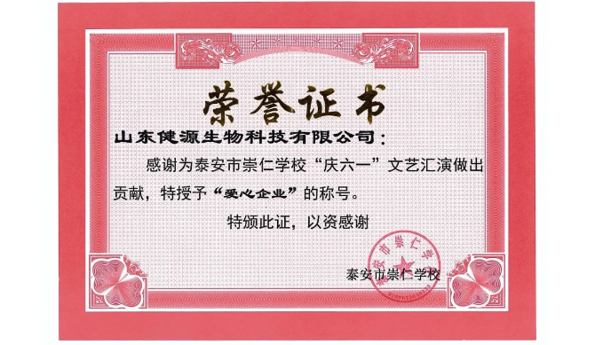 山東健源生物科技有限公司被授予“愛心企業(yè)”稱號