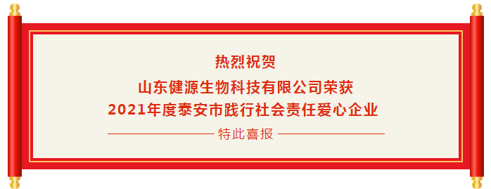 熱烈祝賀山東健源生物科技有限公司榮獲2021年度泰安市踐行社會(huì)責(zé)任愛(ài)心企業(yè)