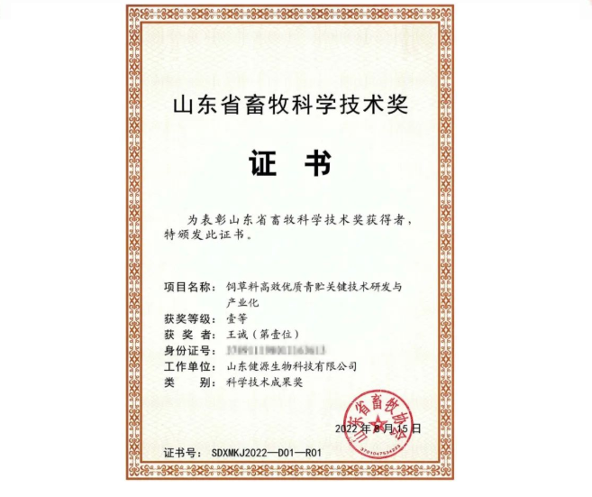 【喜報】山東健源生物榮獲山東省畜牧科學技術(shù)獎一等獎