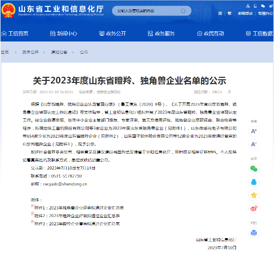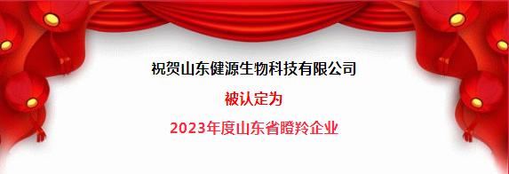 2023年7月10日,山東省工信廳公示了2023年度山東省瞪羚企業(yè)名單,山東健源生物科技有限公司被認(rèn)定為2023年度山東省瞪羚企業(yè)。
