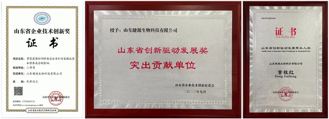 為深入貫徹落實(shí)創(chuàng)新驅(qū)動(dòng)發(fā)展戰(zhàn)略,強(qiáng)化企業(yè)技術(shù)創(chuàng)新主體地位,全面提升企業(yè)創(chuàng)新能力,選樹一批示范帶頭企業(yè)、優(yōu)秀工作者及創(chuàng)新成果,鼓勵(lì)我省企業(yè)和廣大技術(shù)創(chuàng)新工作者不斷做出新的貢獻(xiàn)。根據(jù)《山東省科學(xué)技術(shù)廳關(guān)于進(jìn)一步鼓勵(lì)和規(guī)范山東省社會(huì)力量設(shè)立科學(xué)技術(shù)獎(jiǎng)的指導(dǎo)意見》《山東省企業(yè)技術(shù)創(chuàng)新促進(jìn)會(huì)章程》和《山東省企業(yè)技術(shù)創(chuàng)新促進(jìn)會(huì)技術(shù)創(chuàng)新獎(jiǎng)獎(jiǎng)勵(lì)辦法》有關(guān)要求,結(jié)合工作實(shí)際,組織開展2023年山東省企業(yè)技術(shù)創(chuàng)新促進(jìn)會(huì)技術(shù)創(chuàng)新獎(jiǎng)評(píng)選工作。根據(jù)《山東省企業(yè)技術(shù)創(chuàng)新促進(jìn)會(huì)技術(shù)創(chuàng)新獎(jiǎng)獎(jiǎng)勵(lì)辦法》和有關(guān)評(píng)審細(xì)則,評(píng)選活動(dòng)結(jié)果公示。山東健源生物科技有限公司榮獲山東省創(chuàng)新驅(qū)動(dòng)發(fā)展獎(jiǎng)突出貢獻(xiàn)單位。公司論文《紫花苜蓿和飼料;旌锨噘A對(duì)發(fā)酵品質(zhì)和營養(yǎng)成分的影響》榮獲山東省企業(yè)技術(shù)創(chuàng)新獎(jiǎng)優(yōu)秀論文二等獎(jiǎng)。公司研發(fā)部負(fù)責(zé)人董桂紅榮獲山東省創(chuàng)新驅(qū)動(dòng)發(fā)展帶頭人獎(jiǎng)。