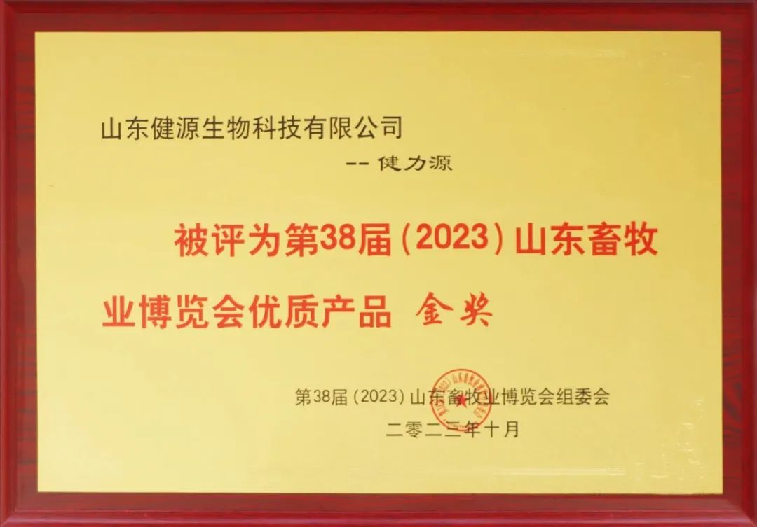山東健源生物產(chǎn)品“健力源”獲得第38屆山東畜牧業(yè)博覽會(huì)優(yōu)質(zhì)產(chǎn)品金獎(jiǎng)