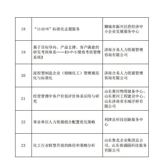 為深入貫徹黨的二十大精神,落實《工業(yè)和信息化部辦公廳關(guān)于開展數(shù)字化賦能、科技成果賦智、質(zhì)量標準品牌賦值中小企業(yè)全國行活動的通知》(工信廳企業(yè)函〔2023〕171號)要求,鼓勵、支持、引導廣大中小企業(yè)加大科研投入,增強創(chuàng)新能力,提高科技成果轉(zhuǎn)化和產(chǎn)業(yè)化水平,推動科技成果有效“賦智”中小企業(yè),持續(xù)增強核心競爭力,組織開展了2023年企業(yè)創(chuàng)新優(yōu)秀成果推廣目錄申報工作。經(jīng)企業(yè)自愿申報、各市中小企業(yè)主管部門和服務機構(gòu)初審推薦、專家評審認定, 公示和異議復核等程序,確定將23項管理創(chuàng)新成果項目認定為創(chuàng)新優(yōu)秀成果、新產(chǎn)品和論文,統(tǒng)一納入企業(yè)創(chuàng)新優(yōu)秀成果推廣目錄。