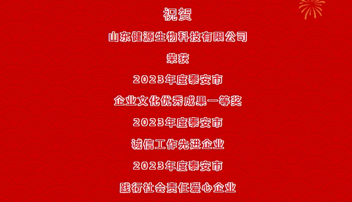 市泰山企業(yè)家審委會(huì)經(jīng)申報(bào)并認(rèn)真評(píng)選,決定授予山東健源生物科技有限公司等24家企業(yè)(單位)為“泰安市誠(chéng)信工作先進(jìn)企業(yè)”稱號(hào)。