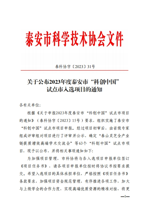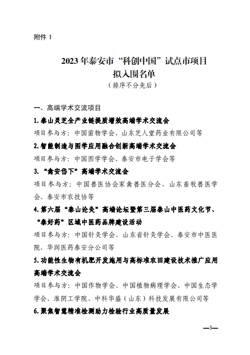 附:2023年泰安市“科創(chuàng)中國”試點(diǎn)市項目擬入圍名單