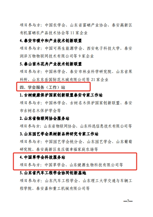 中國草學(xué)會泰安服務(wù)站落戶健源生物—“科創(chuàng)中國”試點(diǎn)市入選項目