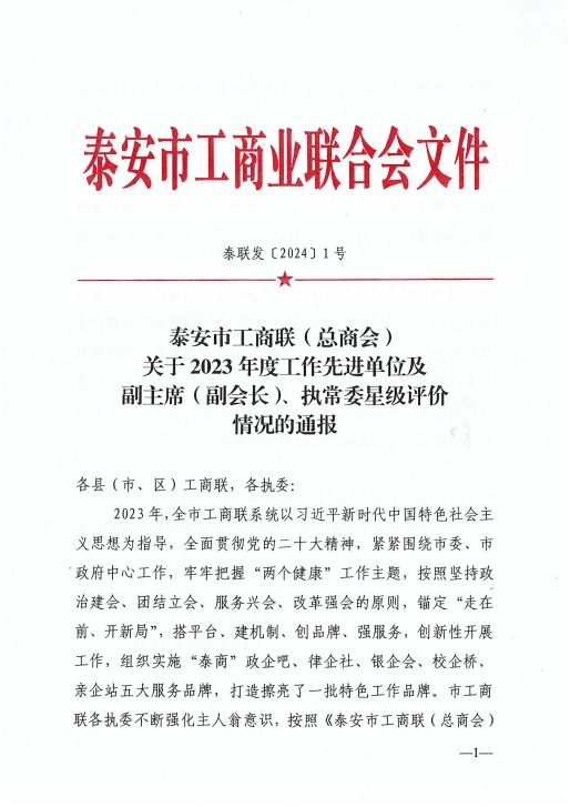 董事長王誠榮獲泰安市工商聯(lián)“優(yōu)秀常委”榮譽(yù)稱號