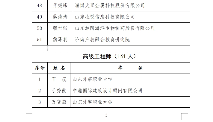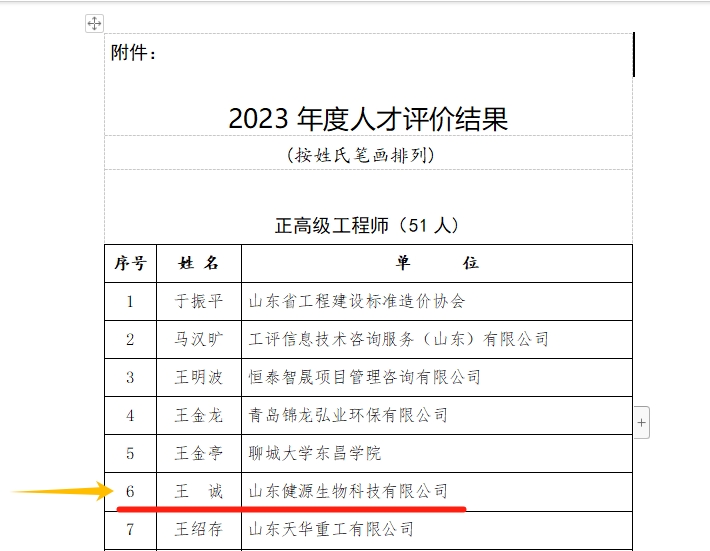 根據(jù)《山東省工程師協(xié)會人才評價(jià)實(shí)施意見(試行)》和《山東省工程師協(xié)會人才評價(jià)試行標(biāo)準(zhǔn)》,經(jīng)資格審查和專家評審?fù)ㄟ^,共有51人具備正高級工程師資格、161人具備高級工程師資格,154人具備工程師資格,53人具備助理工程師資格。山東健源生物科技有限公司董事長王誠獲評正高級工程師資格。