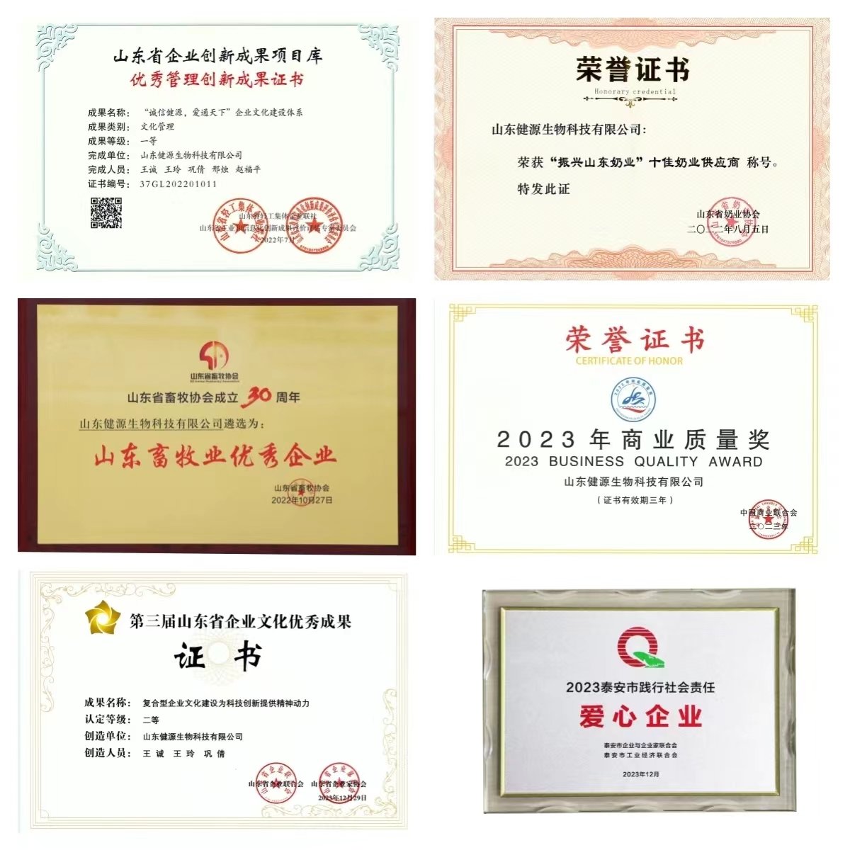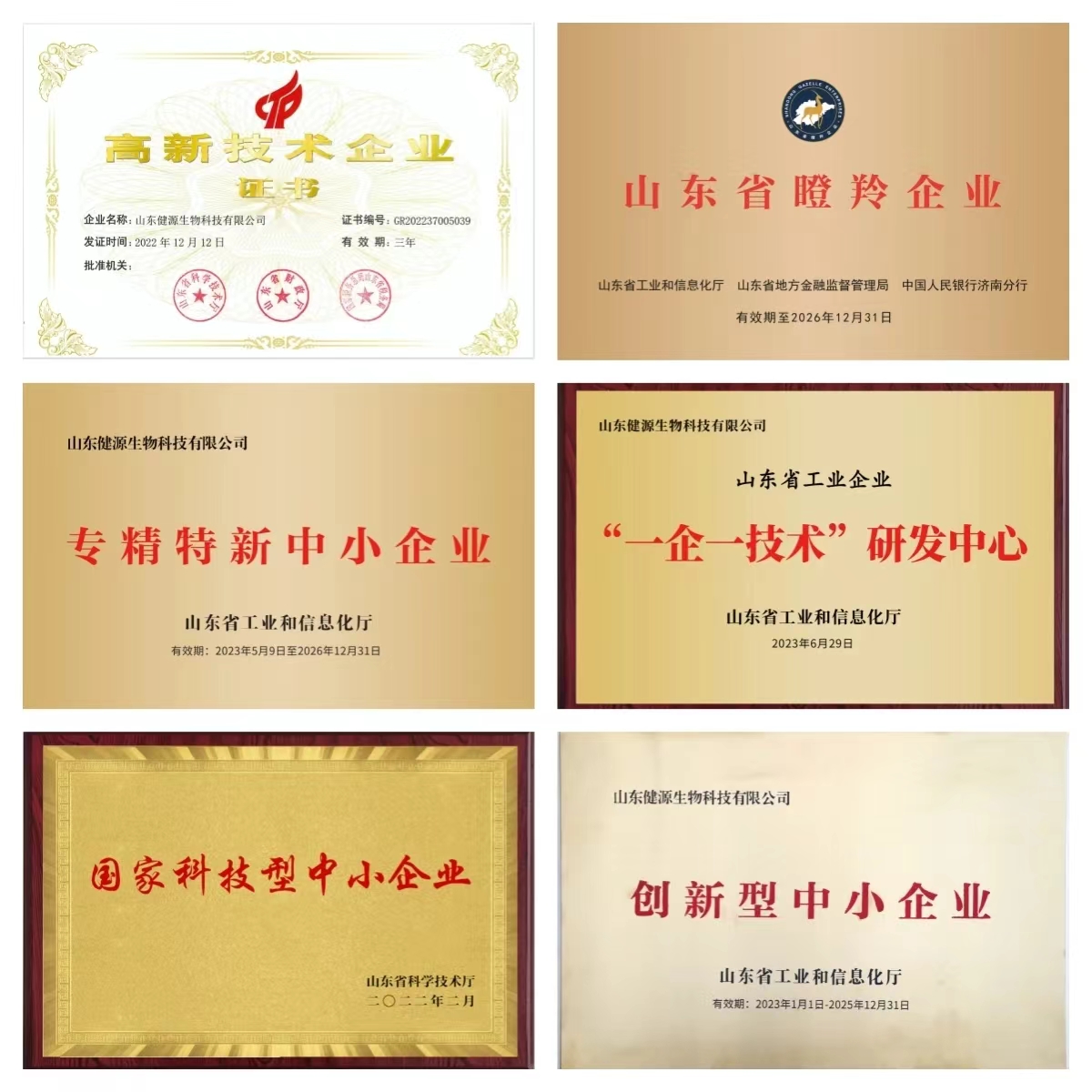 健源生物成立十周年,部分企業(yè)榮譽(yù)展示