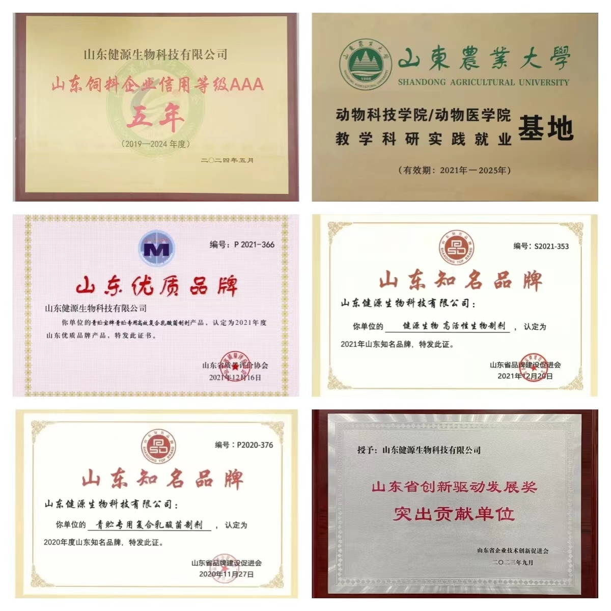 山東健源生物科技有限公司系國(guó)家高新技術(shù)企業(yè)、國(guó)家科技型中小企業(yè)、山東省瞪羚企業(yè)、山東省專精特新中小企業(yè)、山東省一企一技術(shù)研發(fā)中心、泰安市農(nóng)業(yè)產(chǎn)業(yè)化重點(diǎn)龍頭企業(yè)。公司深耕動(dòng)物微生態(tài)行業(yè)十年,主攻動(dòng)物類生物大健康產(chǎn)品,研發(fā)出三十多種高活性生物制劑產(chǎn)品,致力于以高科技生物技術(shù)保障動(dòng)物健康,現(xiàn)已獲得國(guó)家知識(shí)產(chǎn)權(quán)局頒發(fā)的各類專利證書100余項(xiàng),其中包括32項(xiàng)國(guó)家發(fā)明專利、3項(xiàng)國(guó)際發(fā)明專利,60余項(xiàng)實(shí)用新型專利、14項(xiàng)軟件著作權(quán),注冊(cè)商標(biāo)100多個(gè),還有正在申請(qǐng)中的國(guó)家發(fā)明專利20余項(xiàng),累計(jì)榮獲市級(jí)科技獎(jiǎng)項(xiàng)7項(xiàng),省級(jí)科技獎(jiǎng)項(xiàng)30余項(xiàng),部級(jí)科技獎(jiǎng)項(xiàng)12項(xiàng)。