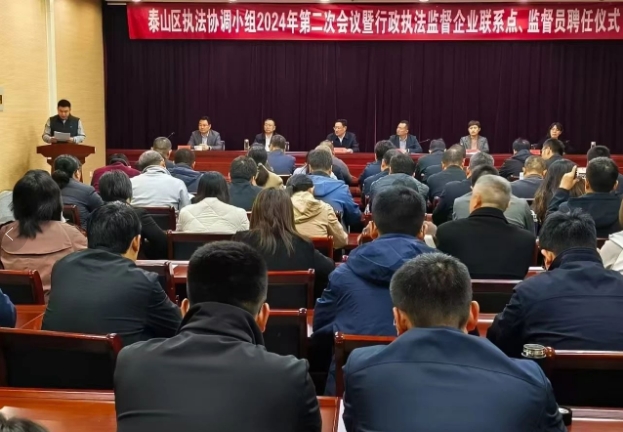 發(fā)布時(shí)間:[2024-10-26 17:27:23] 瀏覽量:3069次10月22日,泰山區(qū)舉行區(qū)委全面依法治區(qū)委員會(huì)執(zhí)法協(xié)調(diào)小組第二次會(huì)議暨行政執(zhí)法監(jiān)督企業(yè)聯(lián)系點(diǎn)、行政執(zhí)法監(jiān)督員聘任儀式。泰安市司法局黨委委員、四級(jí)調(diào)研員張昊寧到會(huì)并講話,泰山區(qū)委常委、區(qū)委政法委書記吳杰主持會(huì)議,各街道(鄉(xiāng)鎮(zhèn))、區(qū)直執(zhí)法部門分工負(fù)責(zé)同志,行政執(zhí)法監(jiān)督員、行政執(zhí)法監(jiān)督企業(yè)聯(lián)系點(diǎn)代表參加會(huì)議。