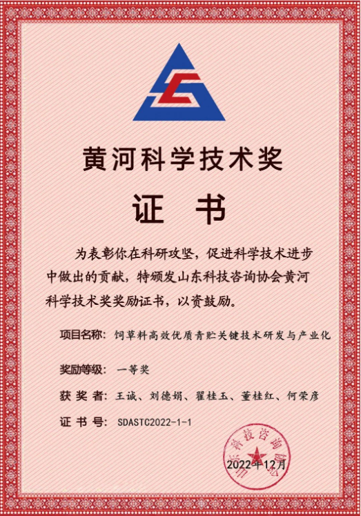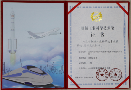 祝賀山東健源生物參與完成的《高效飼草料生產(chǎn)關鍵技術裝備的研發(fā)與產(chǎn)業(yè)化》項目榮獲2022年度機械工業(yè)...