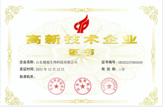 2023-2-11 祝賀山東健源生物再次通過國家高新技術企業(yè)認定