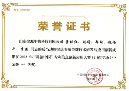 山東健源生物科技有限公司《反芻動物健康養(yǎng)殖關(guān)鍵技術(shù)研發(fā)與應(yīng)用》項(xiàng)目榮獲2023年科創(chuàng)中國專利信息創(chuàng)新應(yīng)用大賽(山東專場)一等獎